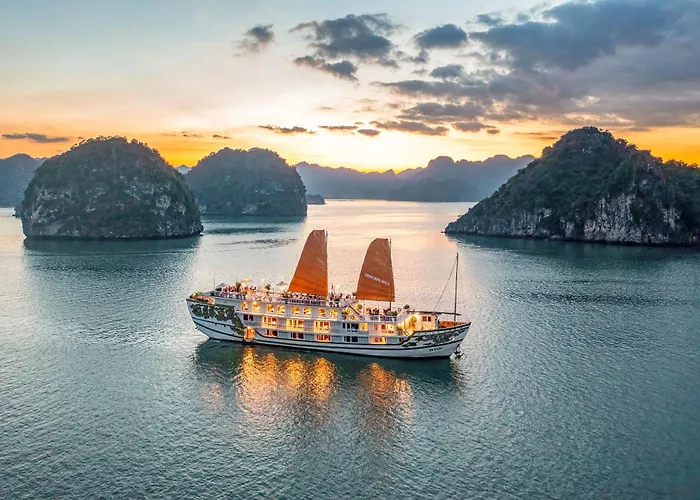 Offering a restaurant and luggage storage, the 5-star Indochina Sails Ha Long Bay Powered By Aston Hotel lies in Bai Chay with Vietnamese eateries and seafood restaurants, as well as cozy waterfront bars with a relaxed vibe, within a 10-minute drive of the stayed Bai Chay Bridge, ideal for those who are pursuing cultural tourism. Featuring 28 rooms with views of the sea, this smoke-free hotel is not so far from Halong Bay.